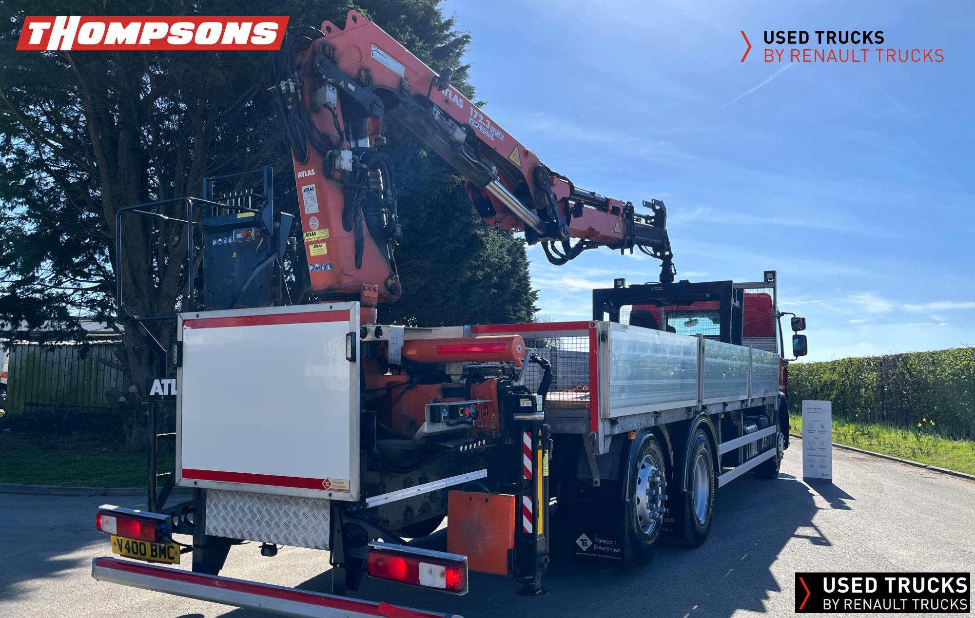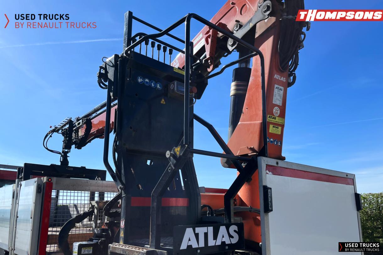 This Renault D 26 Wide 6x2 R 320 E6 Dropside is in excellent condition with low mileage and an automatic gearbox. Fitted with Atlas 172.3 Rear mounted loader and Kinshofer brick Grapple.