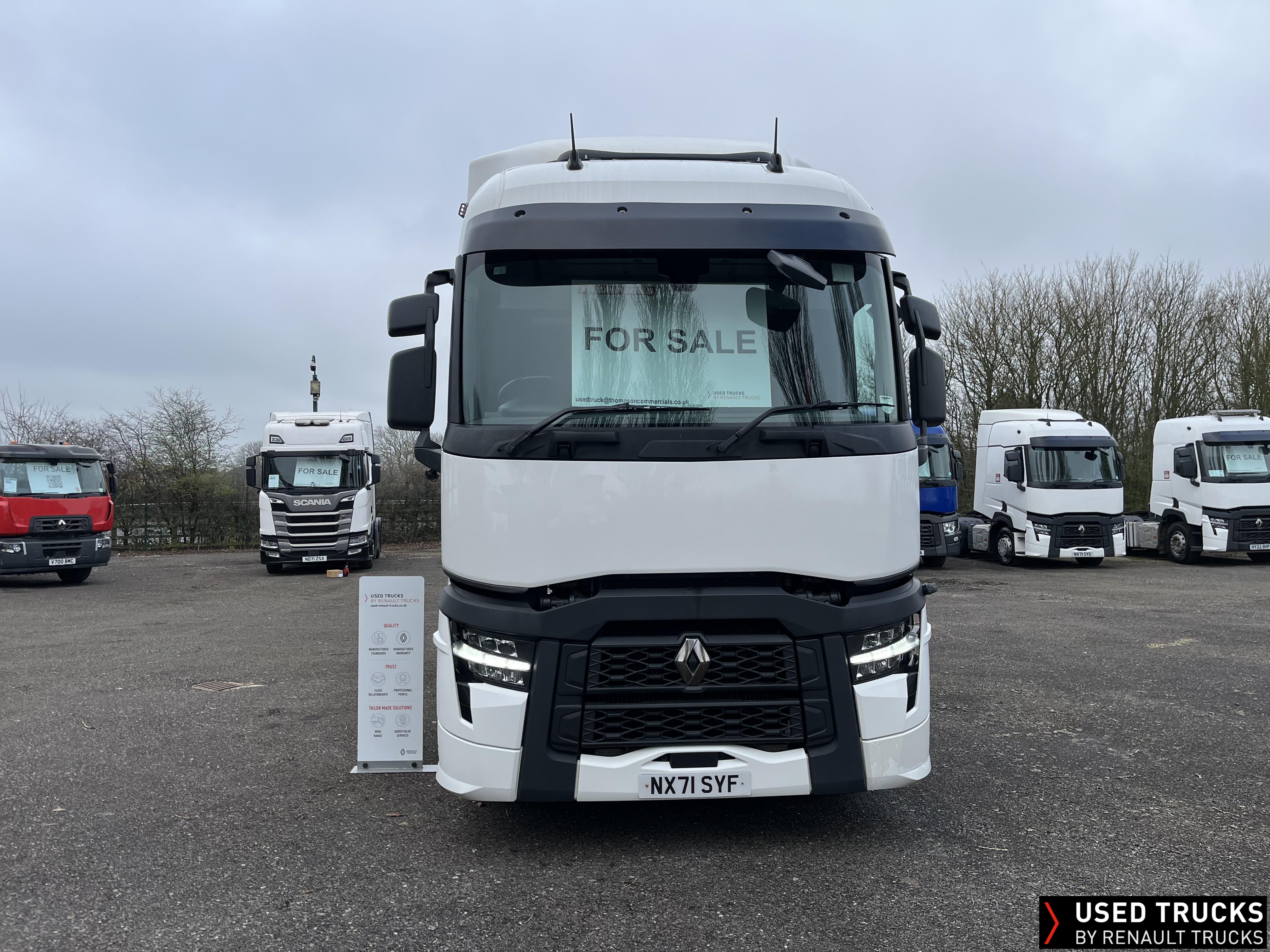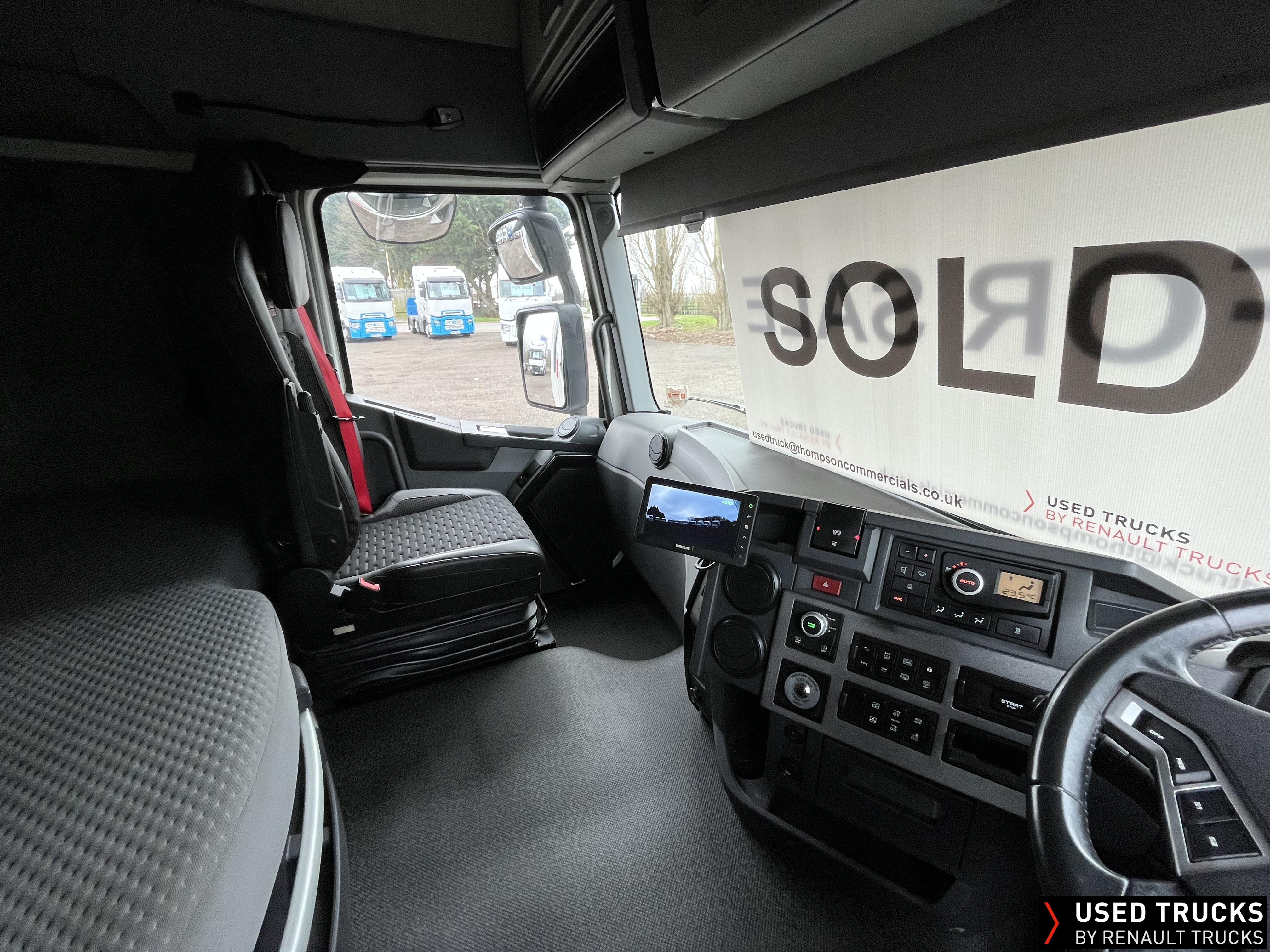 2021 (71) Renault T 480 Evolution TML 6x2 Tractor Unit, with just 471,256kms. Sleeper Cab, 13 LTR 480 BHP Euro 6 Engine & Automatic Gearbox, Engine Brake, Fridge Fitted in Under Bunk Draw , Sunvisor, Cruise Control with Optiroll, Lane Departure Warning System, Emergency Brake Assist, Electronically Regulated Comfort Air Conditioning, , LED Cab Lighting, FM/DAB+ Radio with Bluetooth, 12/24V Sockets, Sliding 5th Wheel.