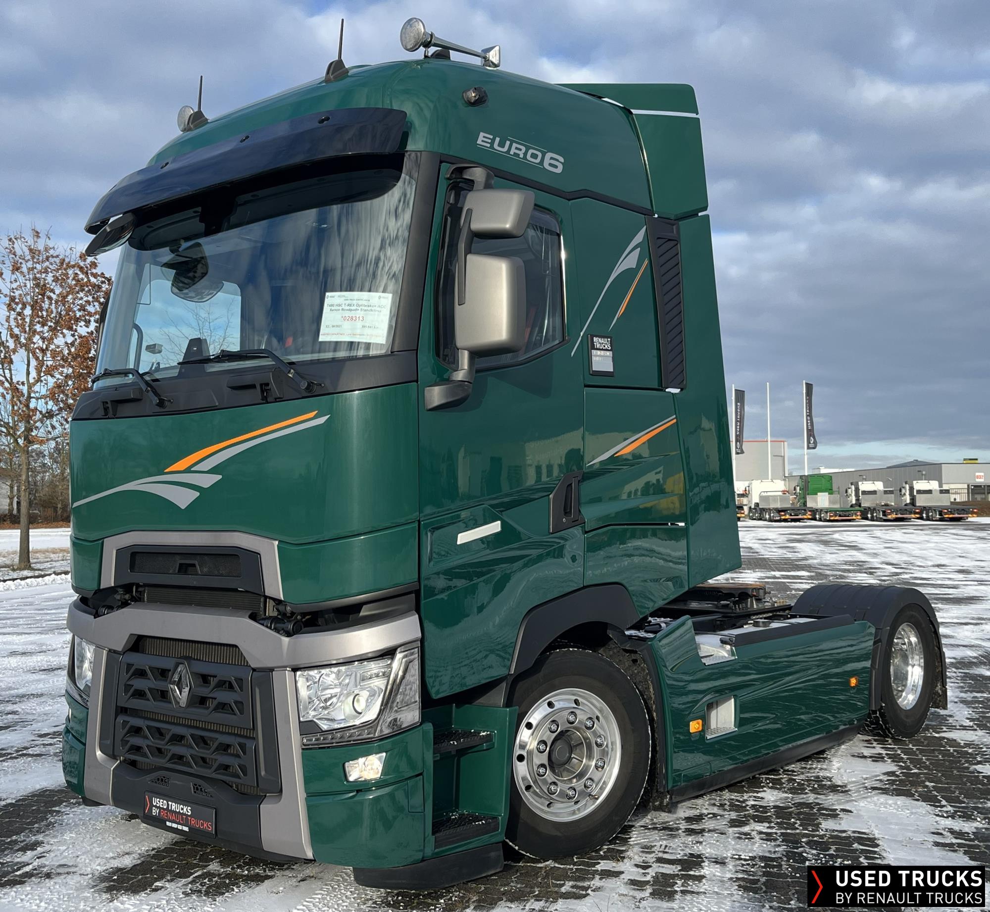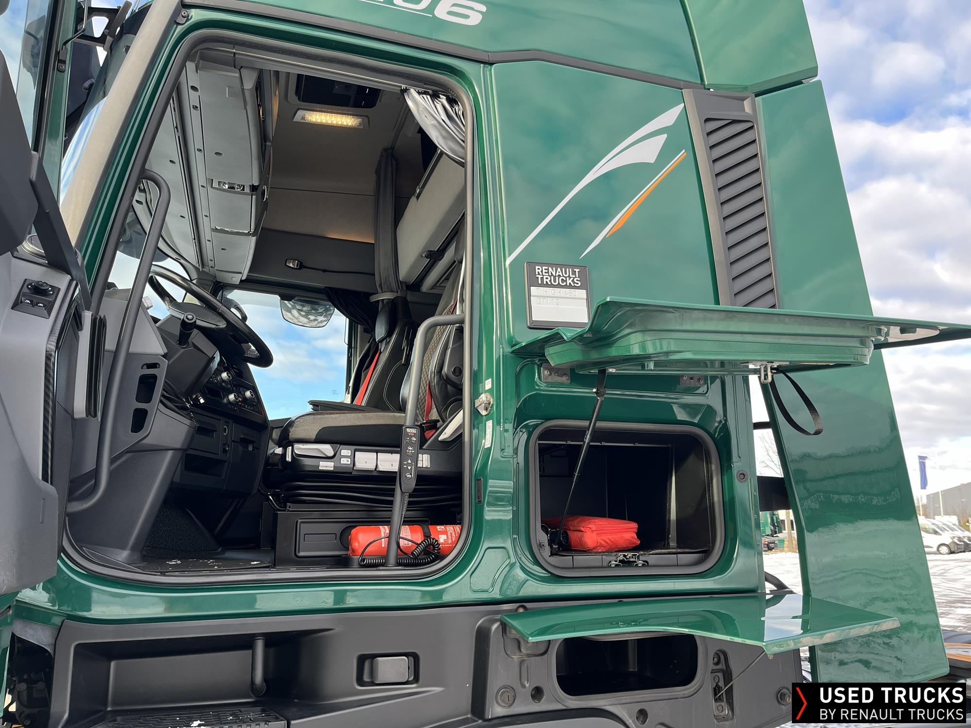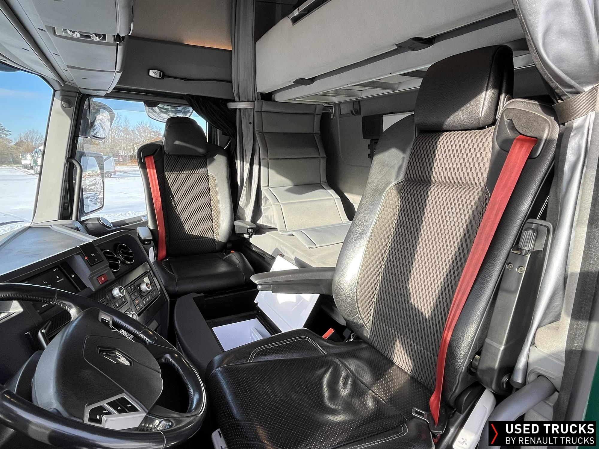**Verkauf ausschließlich an Transportunternehmen innerhalb der EU / Sales exclusively to transport companies within the EU!**, **beheizbarer Dieselfilter**, **Kaltstarthilfe**, Höhe Sattelkupplung 150 mm - Montage tief, **Roadpad+**, Vorhang **Luxe** & Liege, **Kamera seitlich & Kamera Sattelkupplung hinten**, Vorrüstung Scheinwerferträger am Dach, **Integrallackierung Zugmaschine**