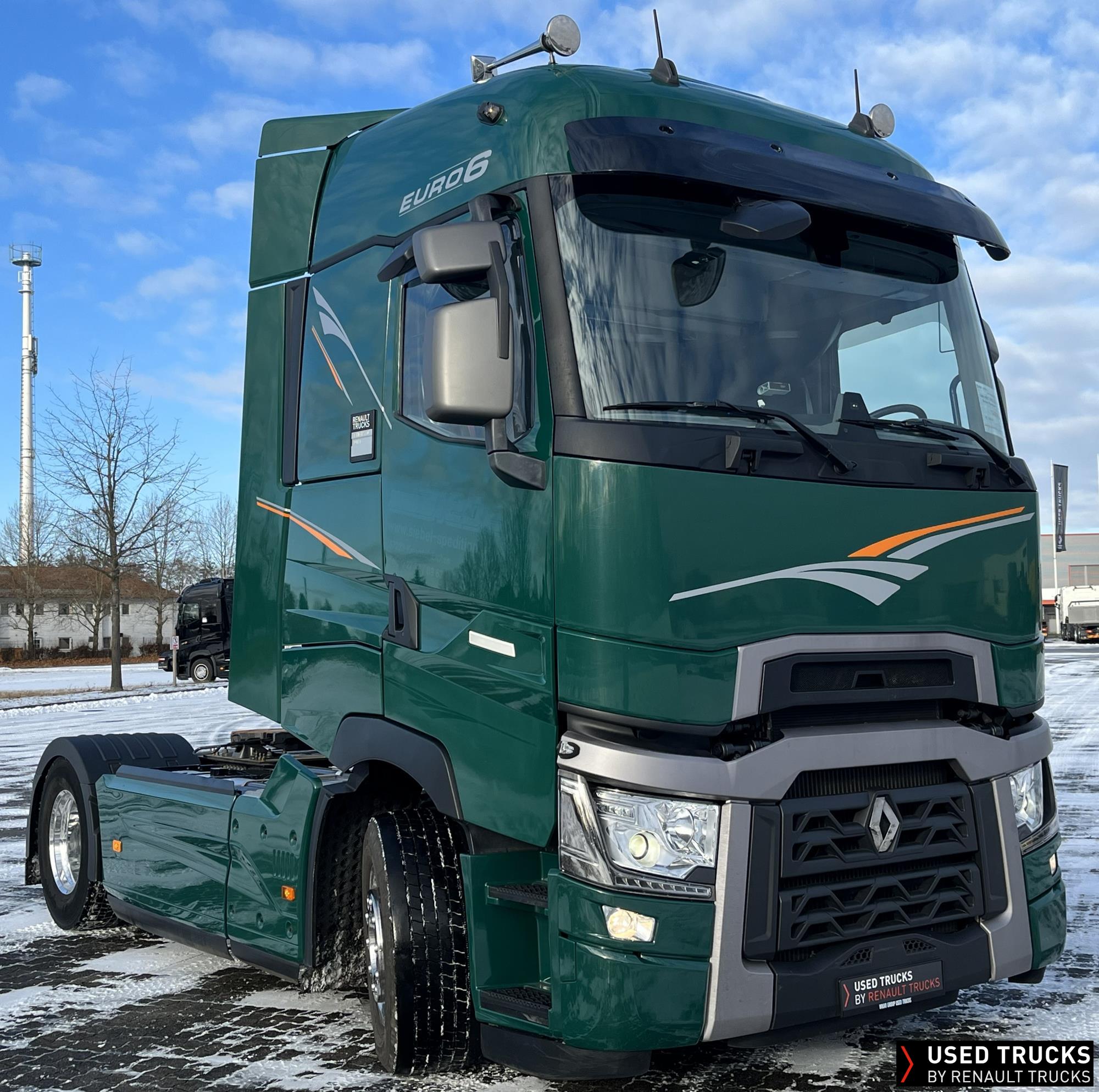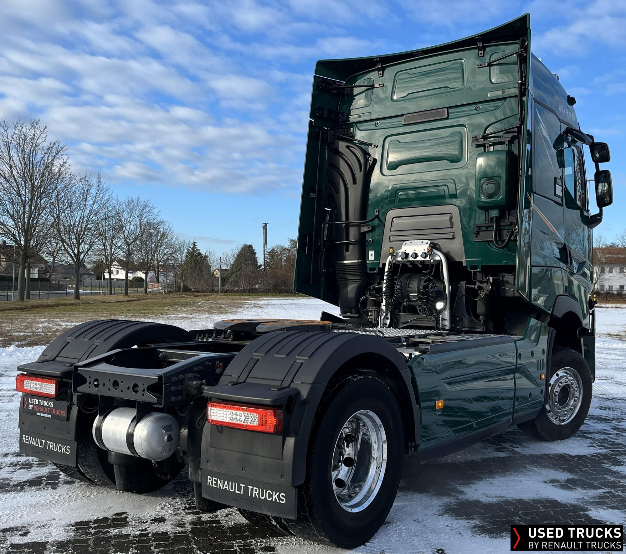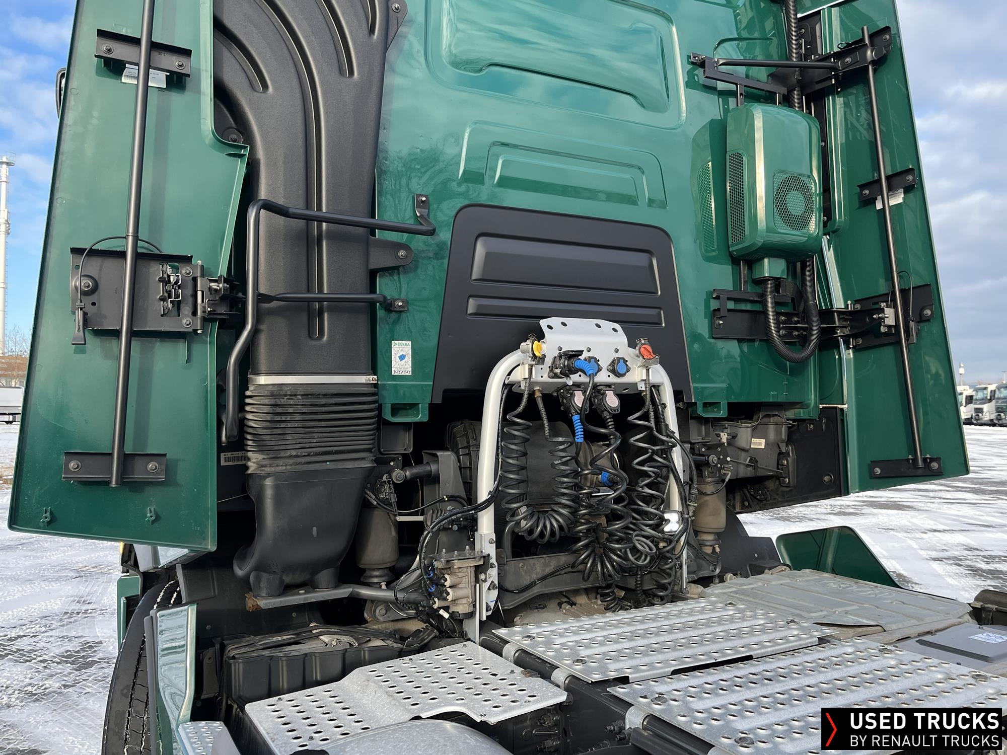 **Verkauf ausschließlich an Transportunternehmen innerhalb der EU / Sales exclusively to transport companies within the EU!**, **beheizbarer Dieselfilter**, **Kaltstarthilfe**, Höhe Sattelkupplung 150 mm - Montage tief, **Roadpad+**, Vorhang **Luxe** & Liege, **Kamera seitlich & Kamera Sattelkupplung hinten**, Vorrüstung Scheinwerferträger am Dach, **Integrallackierung Zugmaschine**
